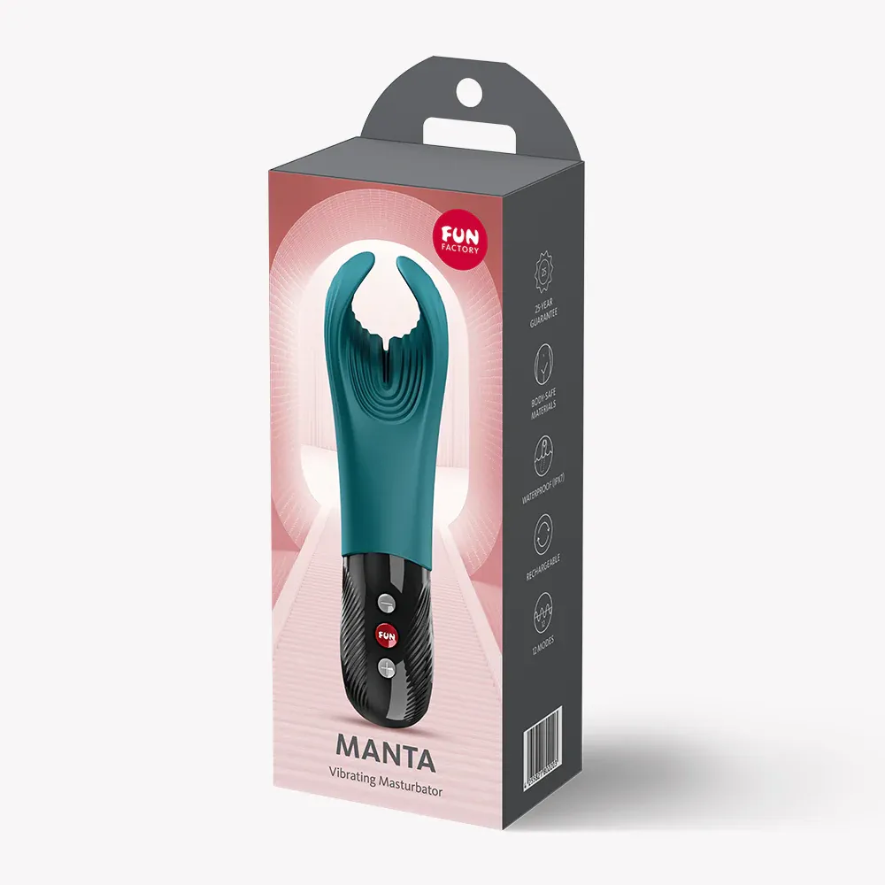 Manta — компактный и мощный мастурбатор, разработанный для интенсивной стимуляции во время соло-использования и в парных сценариях. Эргономичная форма с гибкими «крыльями» охватывает пенис, обеспечивая плотный контакт и направленную вибрацию.