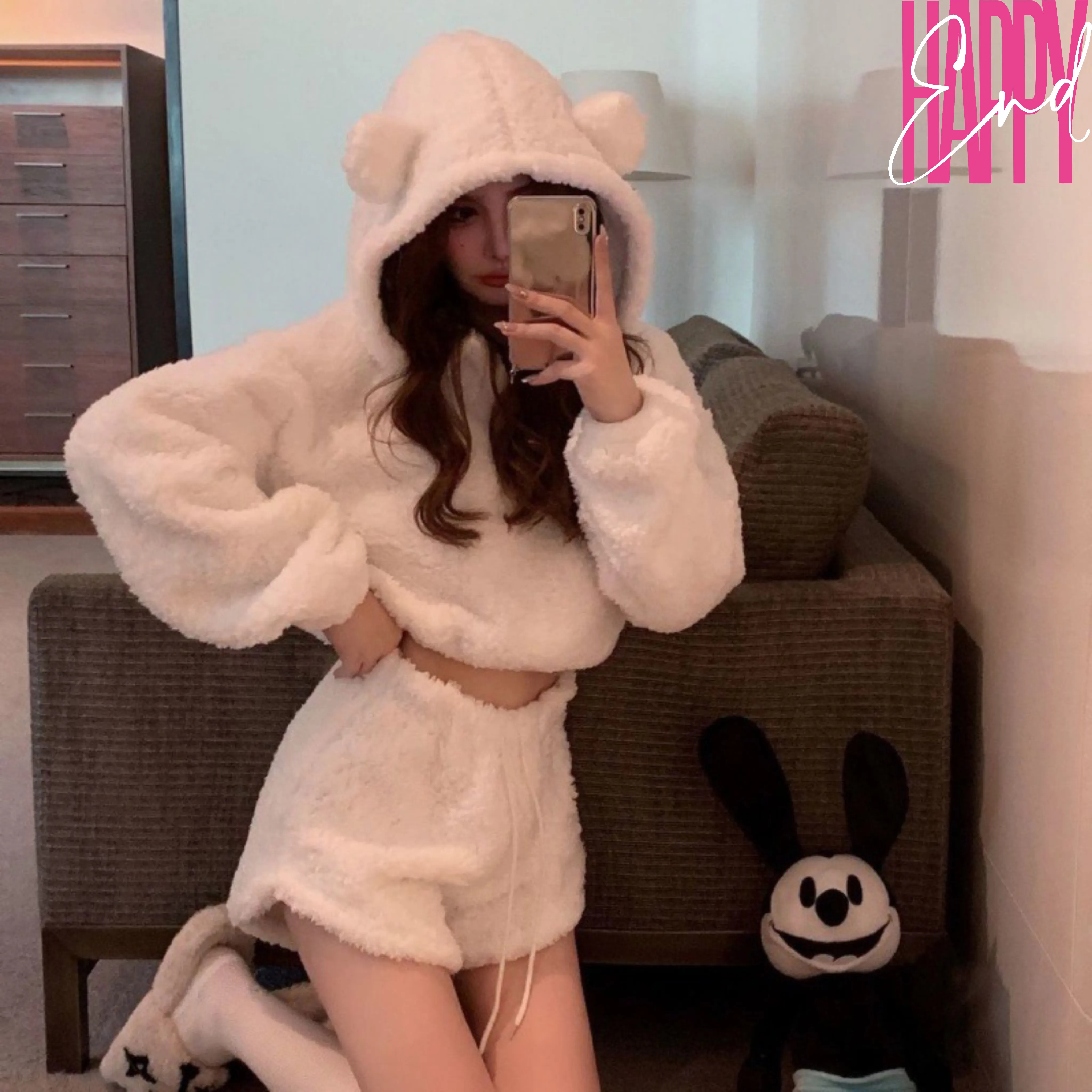 Плюшевая пижама EARS с ушками и шортами, белый, ONE SIZE