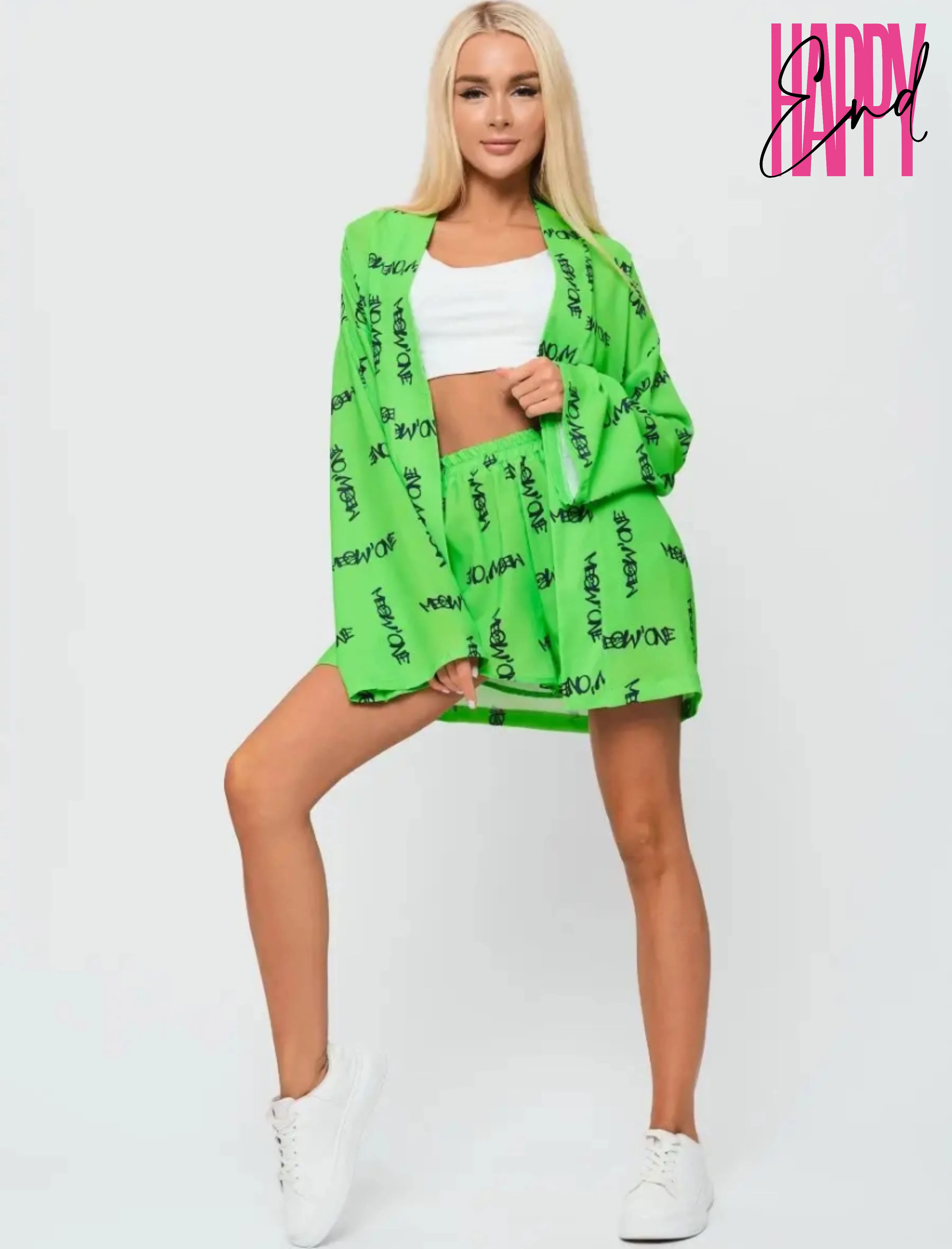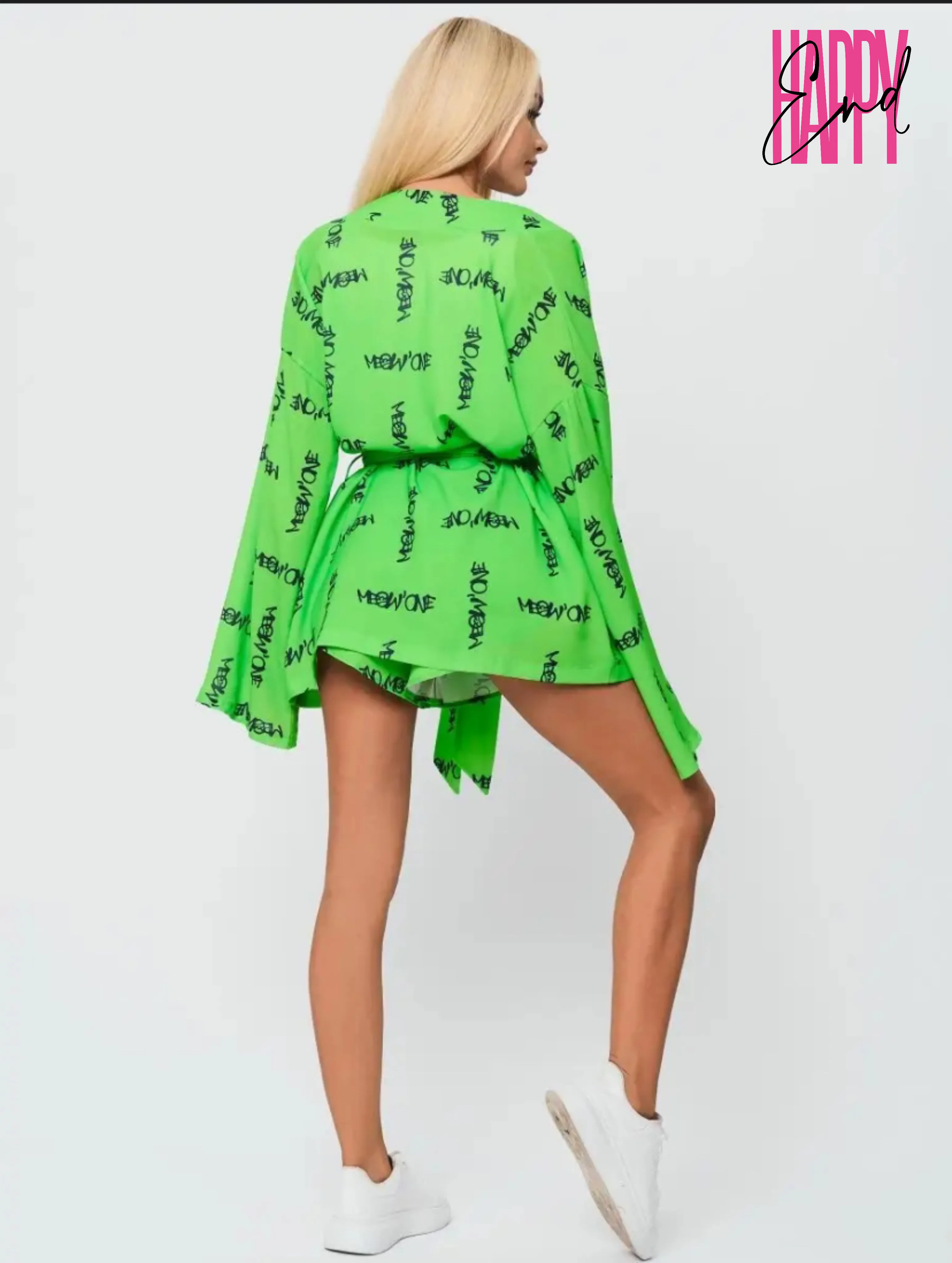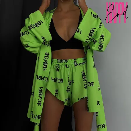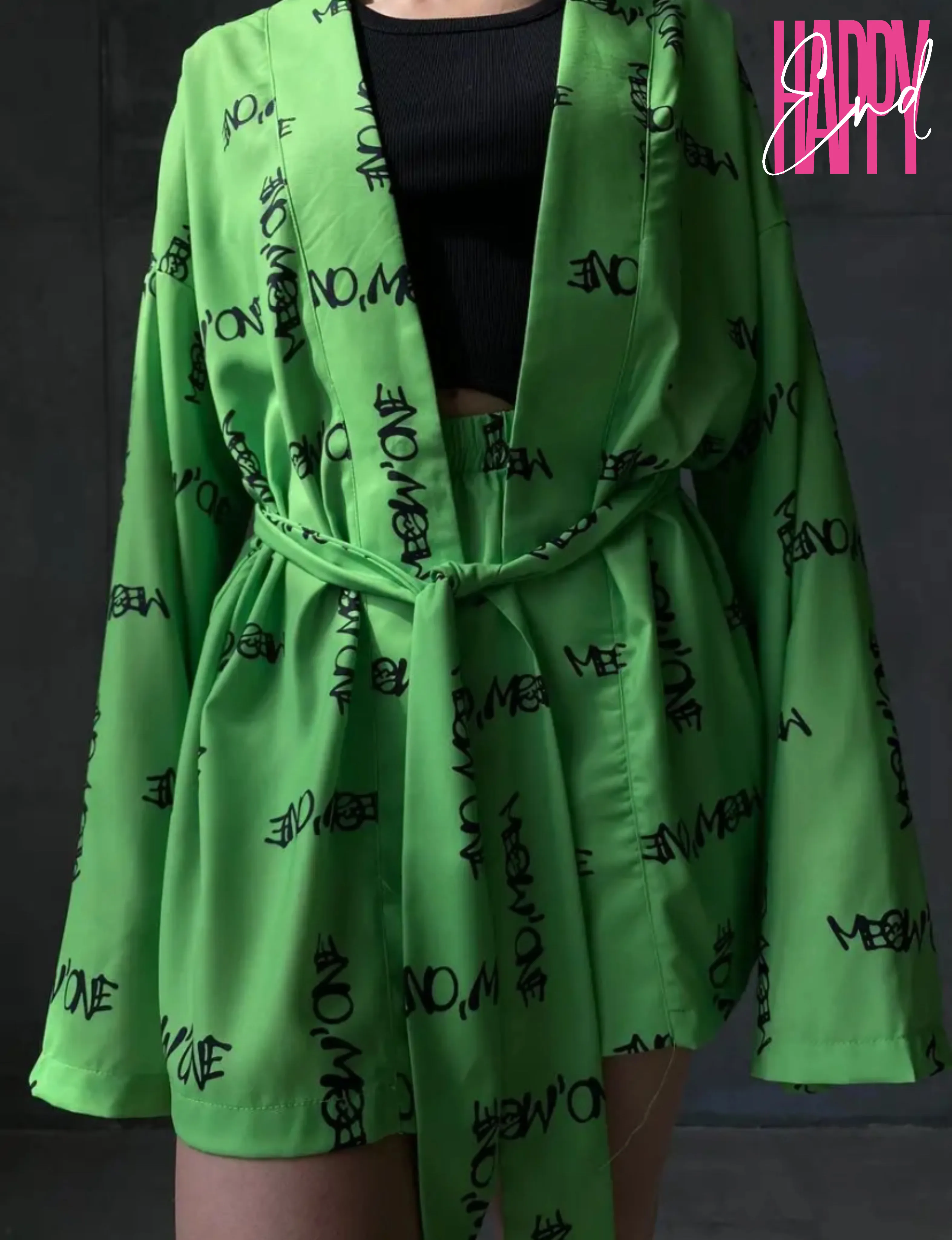 Этот стильный пижамный костюм в стиле кимоно с шортами — идеальный выбор для тех, кто ценит комфорт, элегантность и свободу движений. Комплект идеально подходит для сна и отдыха, а также для создания расслабленного образа на вечер или пижамную вечеринку.