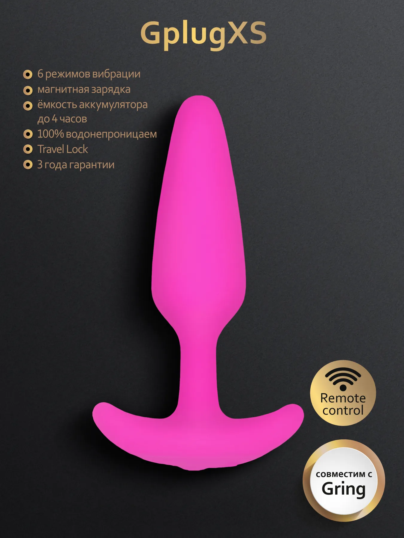 - Совместимость с Gring: возможность дистанционного управления через кольцо-мастурбатор, которое также можно использовать для стимуляции клитора.