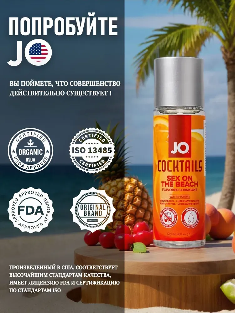 JO Flavored Sex on the Beach — это восхитительный вкусовой лубрикант на водной основе, который подарит вам невероятное удовольствие, благодаря свежему и экзотическому вкусу популярного коктейля "Секс на пляже". Идеален для добавления новых ощущений в интимные игры.