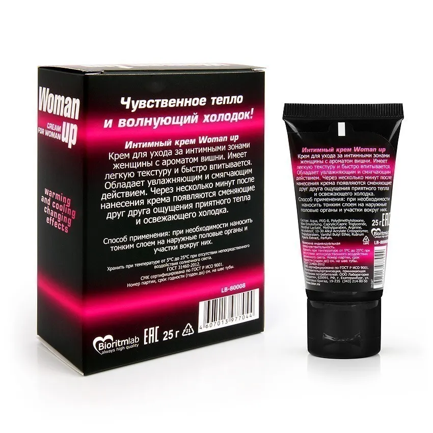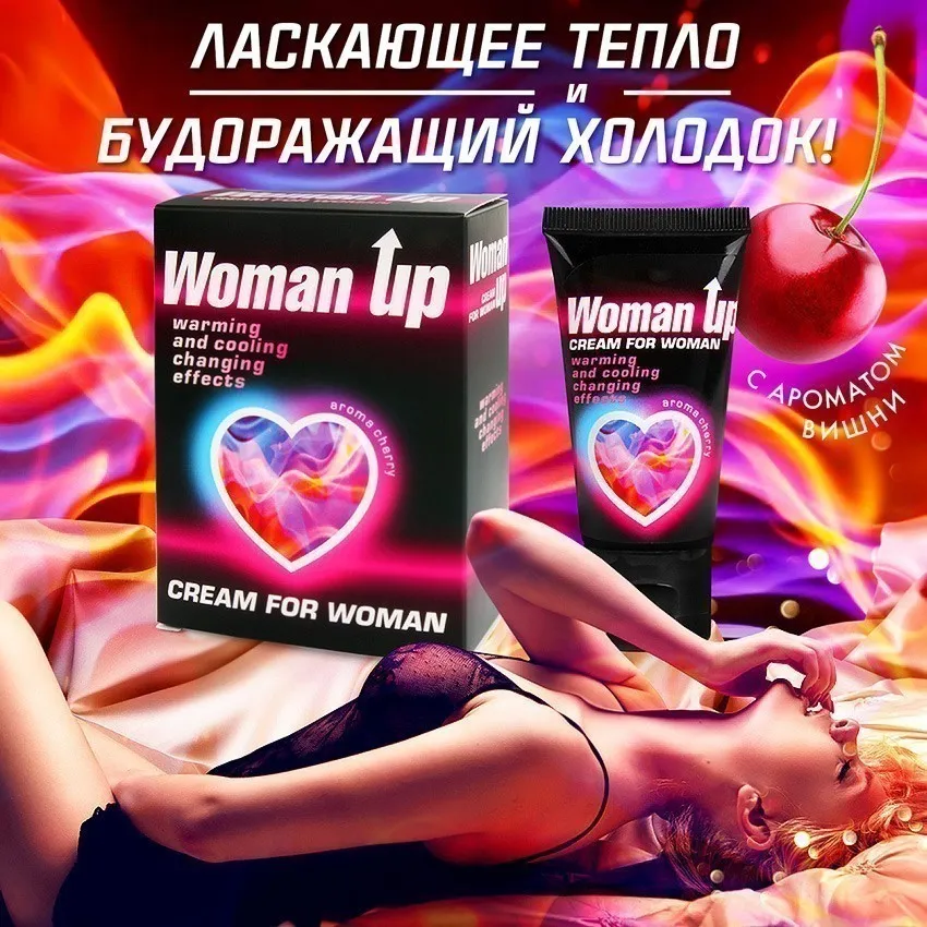 Женский возбуждающий крем Woman Up (вишня) — это чувственный интимный крем с волнующим ароматом спелой вишни, созданный для усиления ощущений и раскрытия женской чувственности. Уже через несколько минут после нанесения крема появляется приятное сочетание тепла и лёгкого холодка, которое пробуждает желание и усиливает чувствительность.