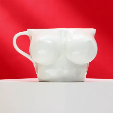 - Дизайн: Кружка в виде женского бюста, с деталями, напоминающими форму груди.